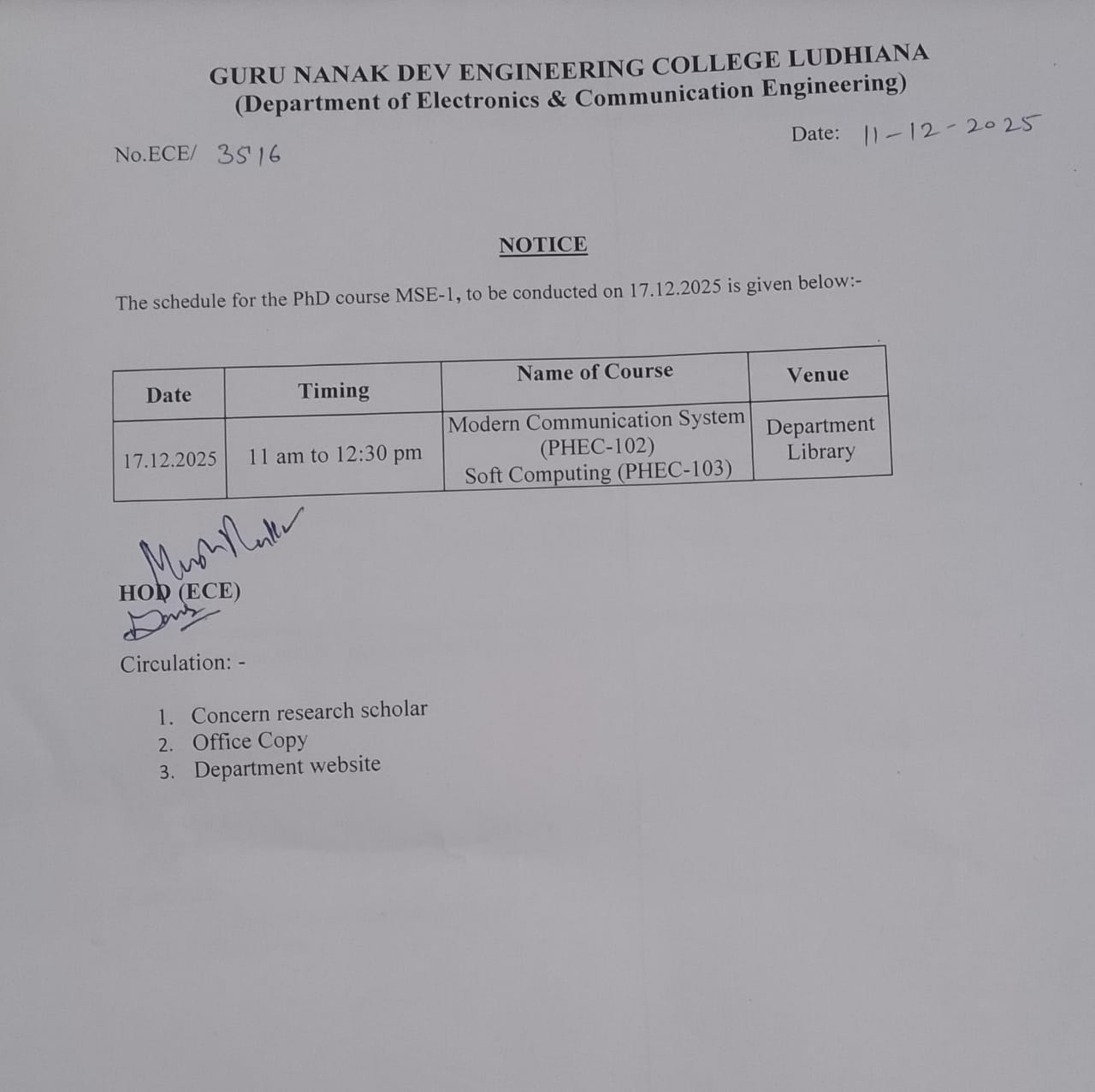 *UGC , NBA , AICTE ,MHRD , DST , SERB , PunjabGovt. TEQIP-II(GNDEC CELL)